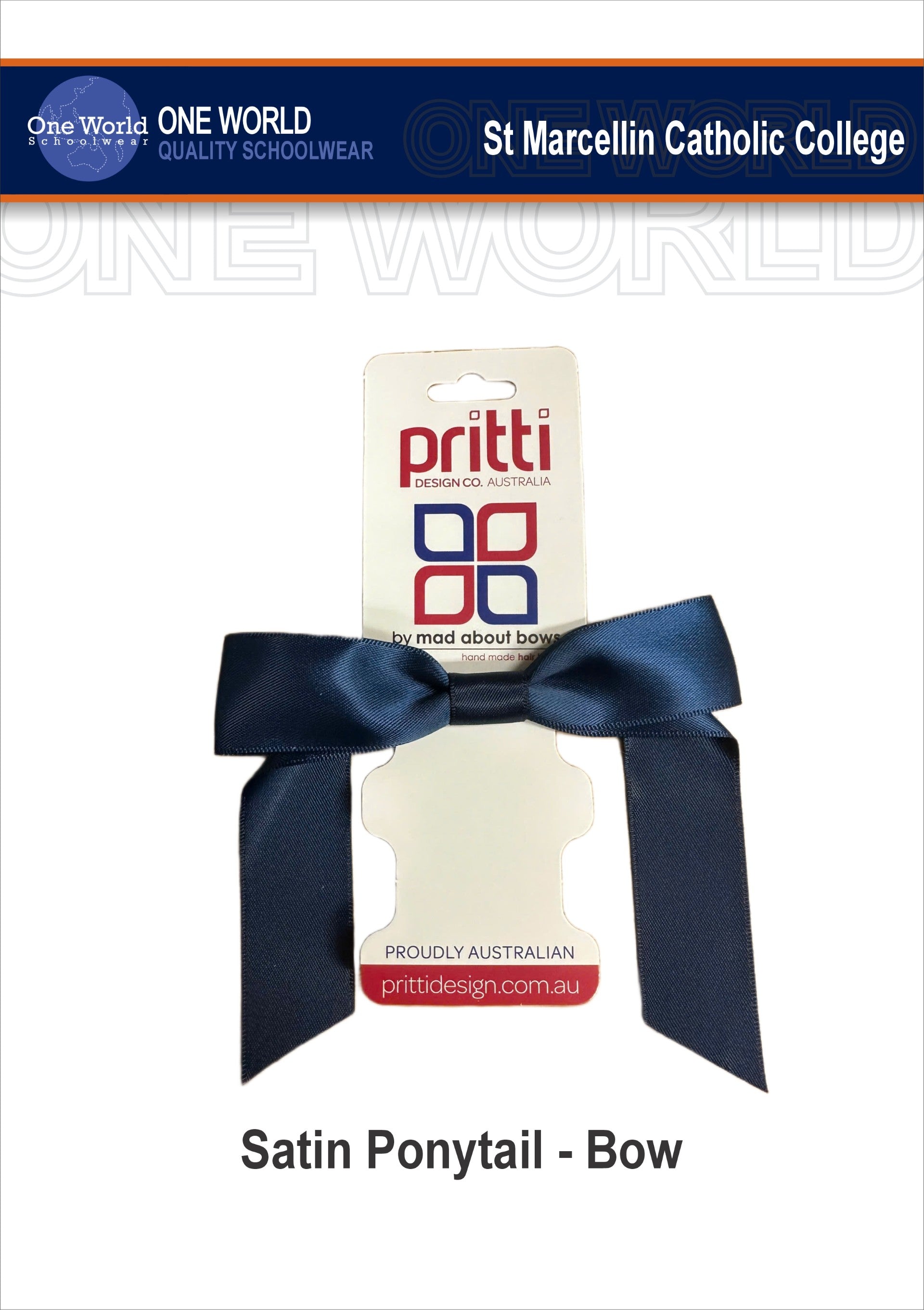 Navy satin Ponytail Bow on Elastic